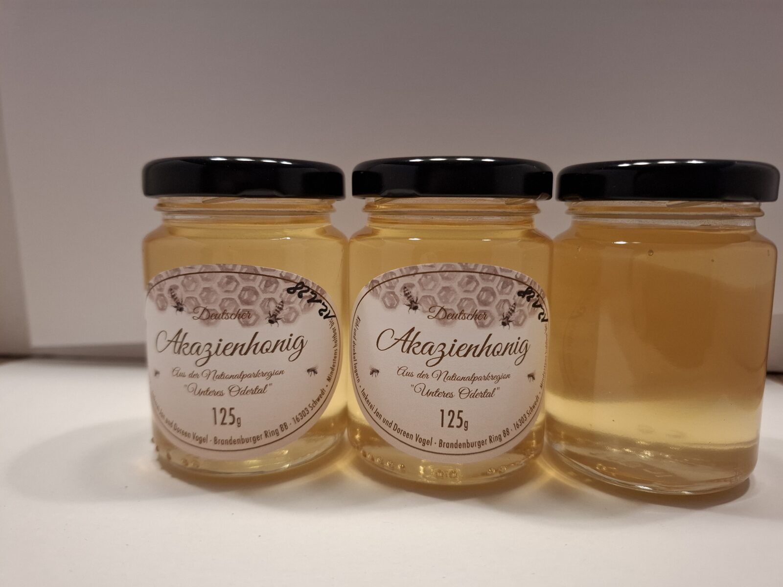 In Brandenburg gibt es noch große zusammenhängende Wälder von Robinienbäumen (Scheinakazie), daher auch die Bezeichnung Akazienhonig.