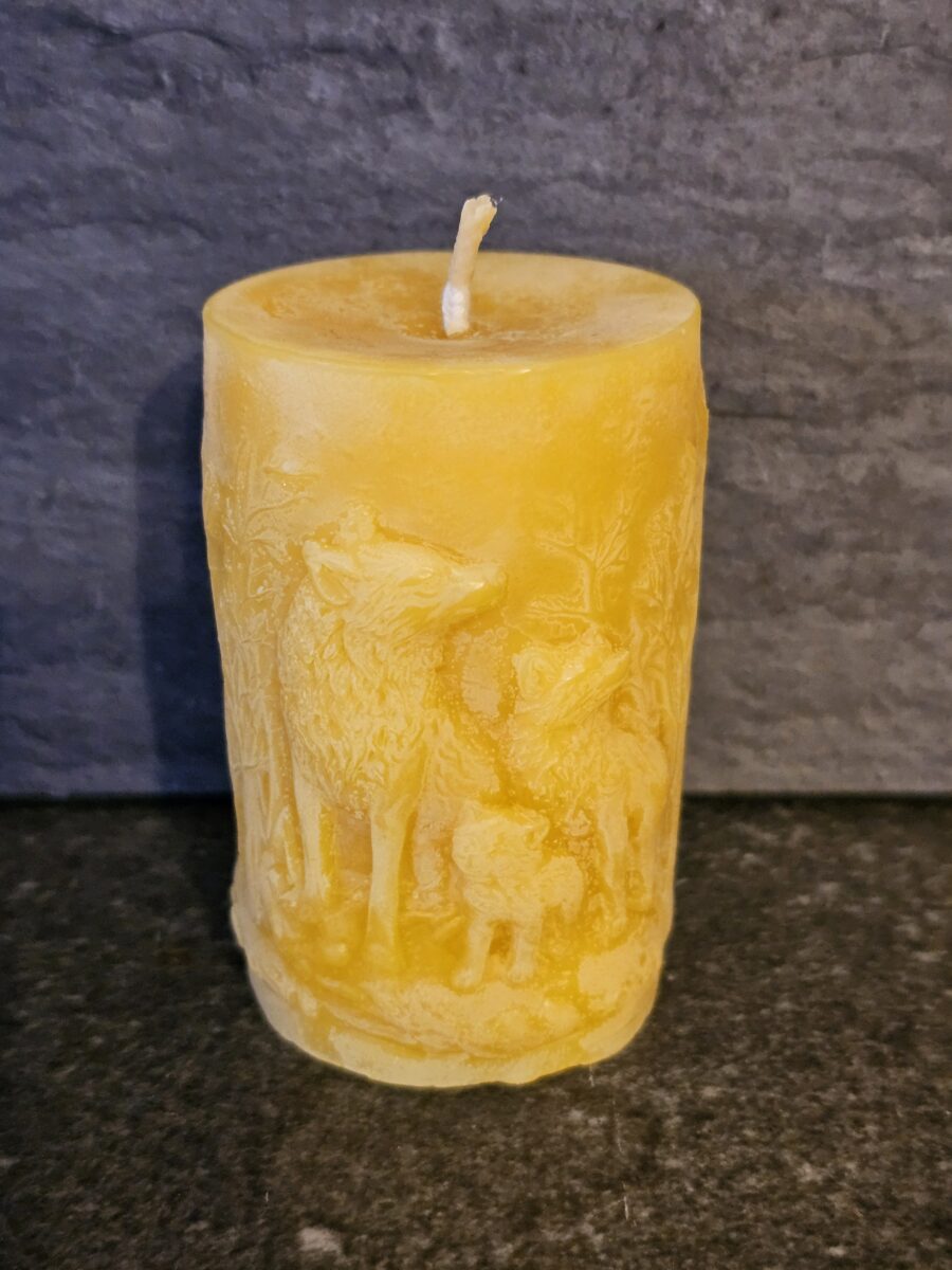 Unsere Bienenwachskerzen Stumpen Wölfe (80 mm hoch und 50 mm im Durchmesser) ist eine charmante Ergänzung für jedes Zuhause. Hergestellt aus 100 % reinem, biologischem Bienenwachs, bietet sie ein warmes, gemütliches Licht und verströmt einen angenehmen, honigartigen Duft beim Brennen. Ideal für romantische Abende, festliche Anlässe oder als stilvolle Dekoration auf dem Tisch, ist unsere Bienenwachskerze auch ein wunderbares Geschenk für Freunde und Familie, die natürliche Produkte schätzen. Gönnen Sie sich die behagliche Atmosphäre, die diese Kerze in Ihr Zuhause bringt!
